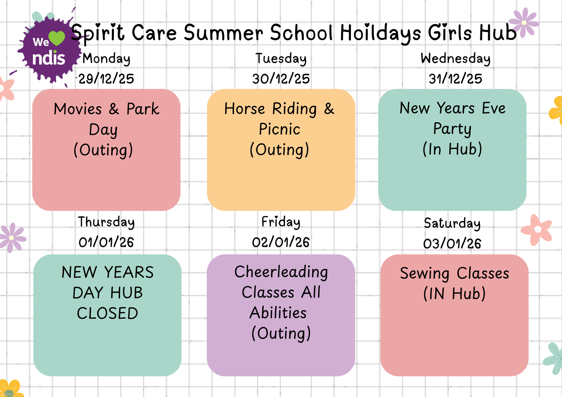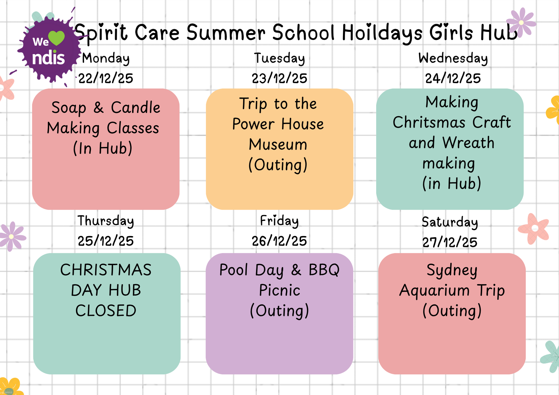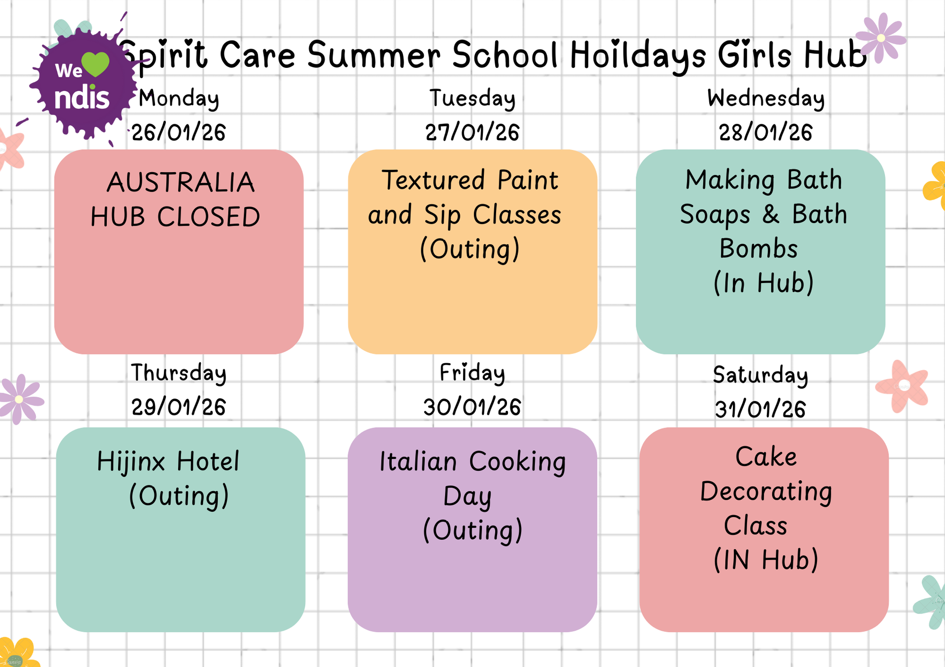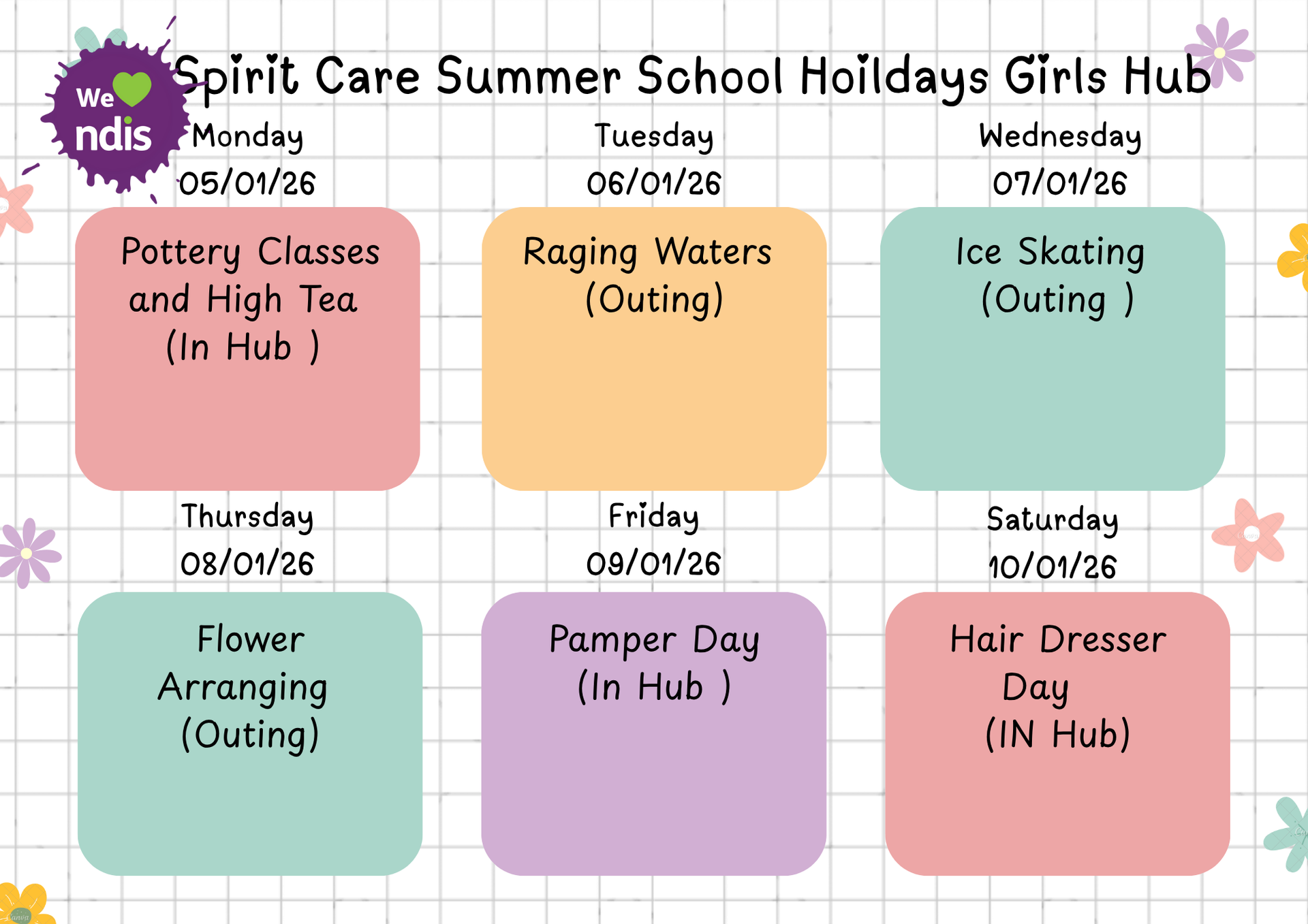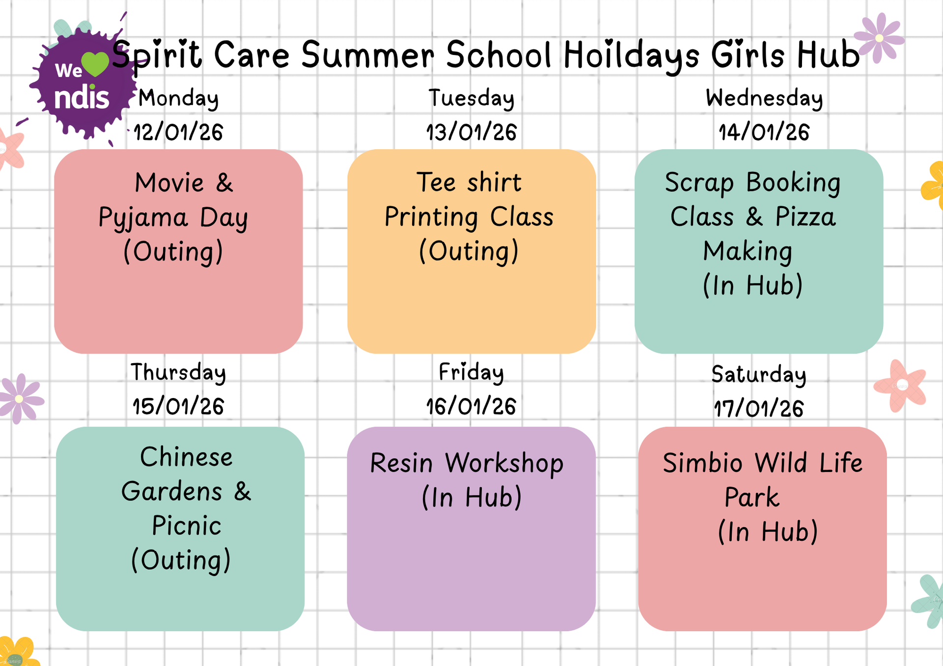 Girls Club Weekly Activities